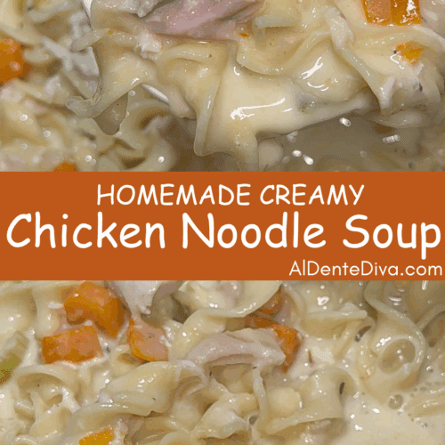 Homemade creamy chicken noodle soup is a rich and comforting classic, filled with juicy chicken, hearty vegetables, and tender noodles in a a velvety broth that will be warm you from the inside out.